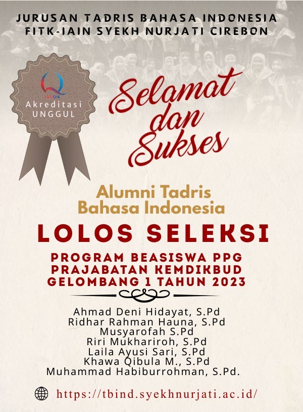 Diucapkan Selamat dan Sukses Alumni Tadris Bahasa Indonesia FITK IAIN Syekh Nurjati Cirebon Lulus Program Beasiswa PPG Prajabatan KEMDIKBUD. “Selamat