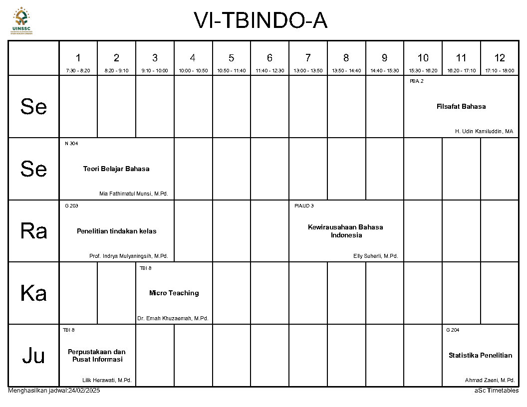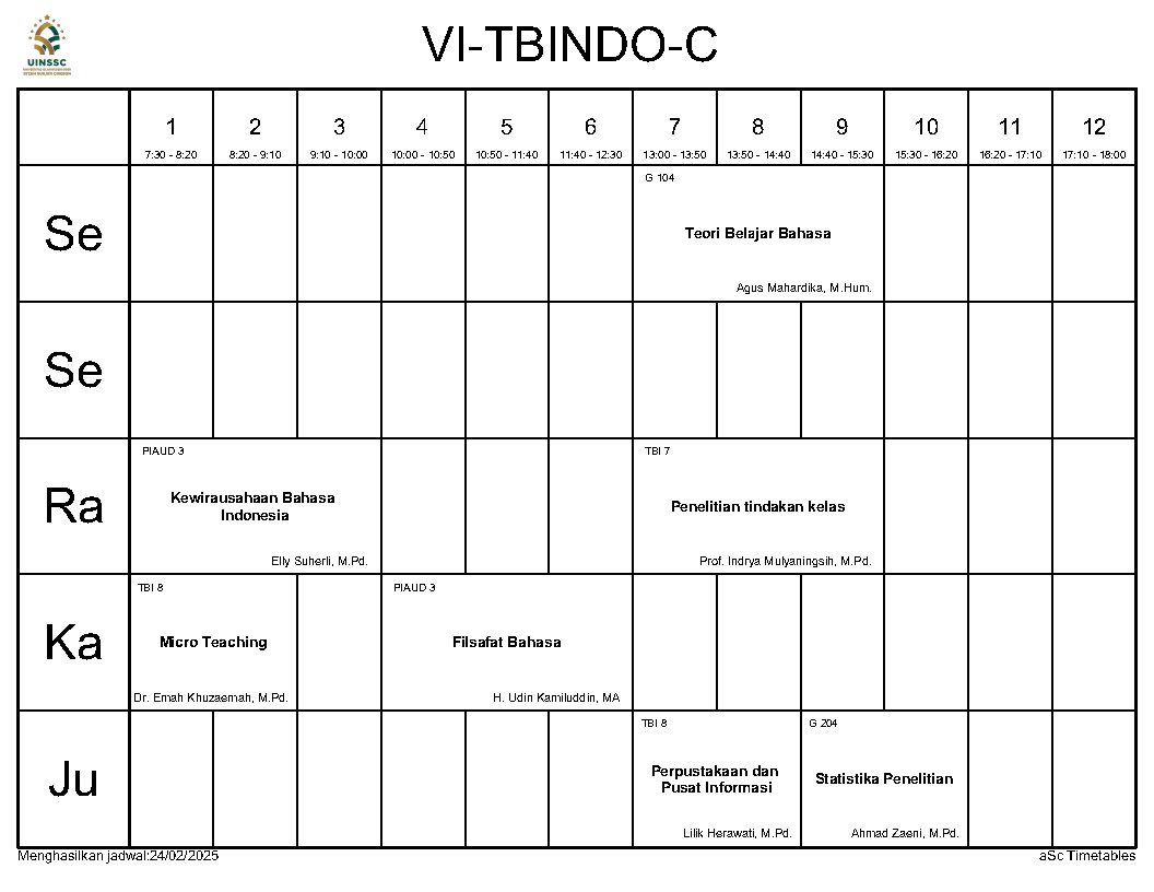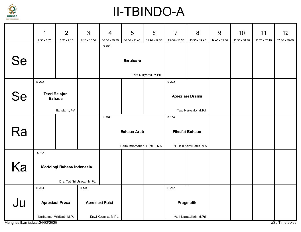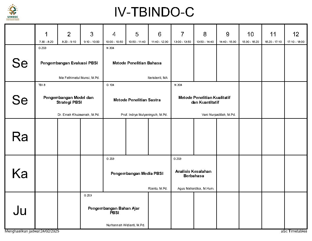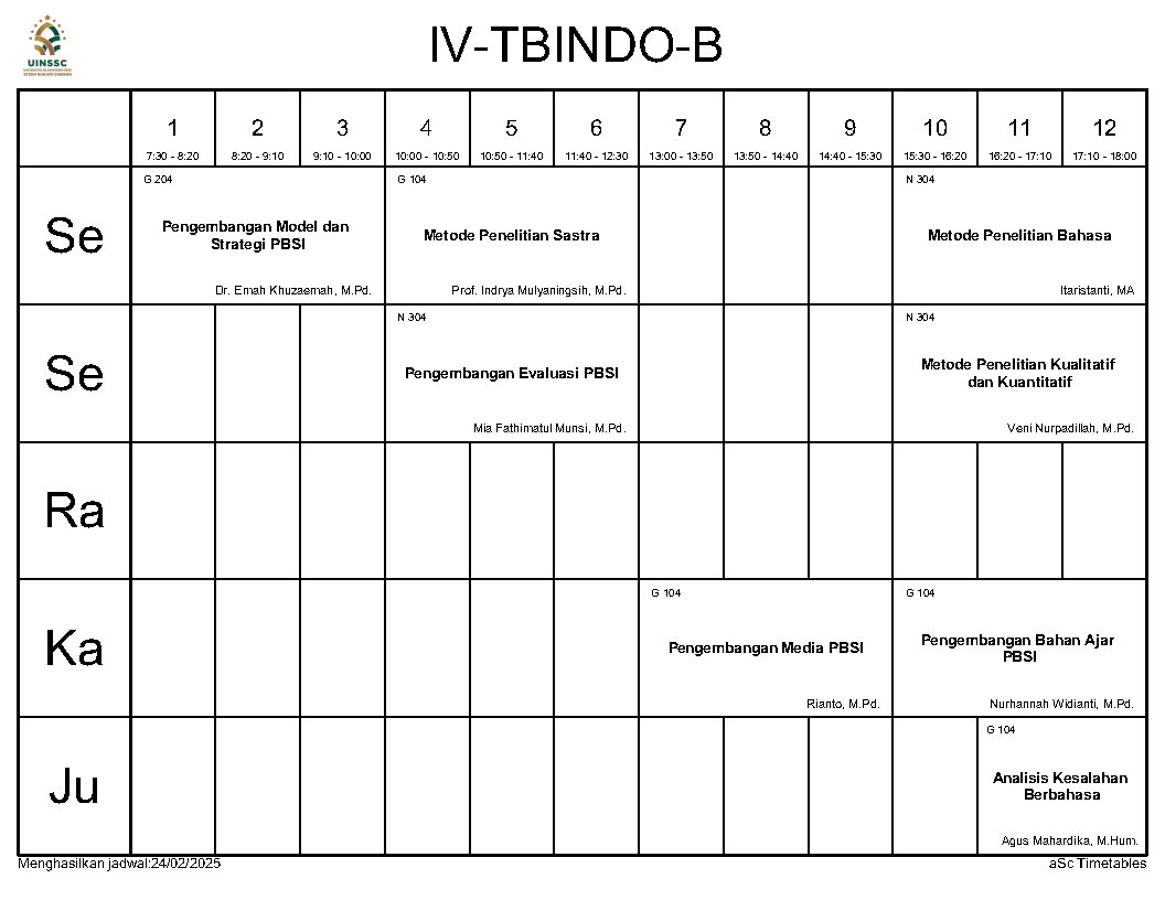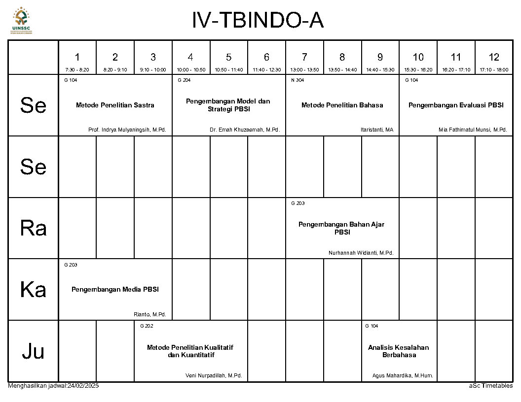 Berikut ini kami informasikan Jadwal Perkuliahan Semester Genap Tahun Akademik 2024/2025, Jurusan Tadris Bahasa Indonesia, FITK, UIN Siber Syekh Nurjati Cirebon.