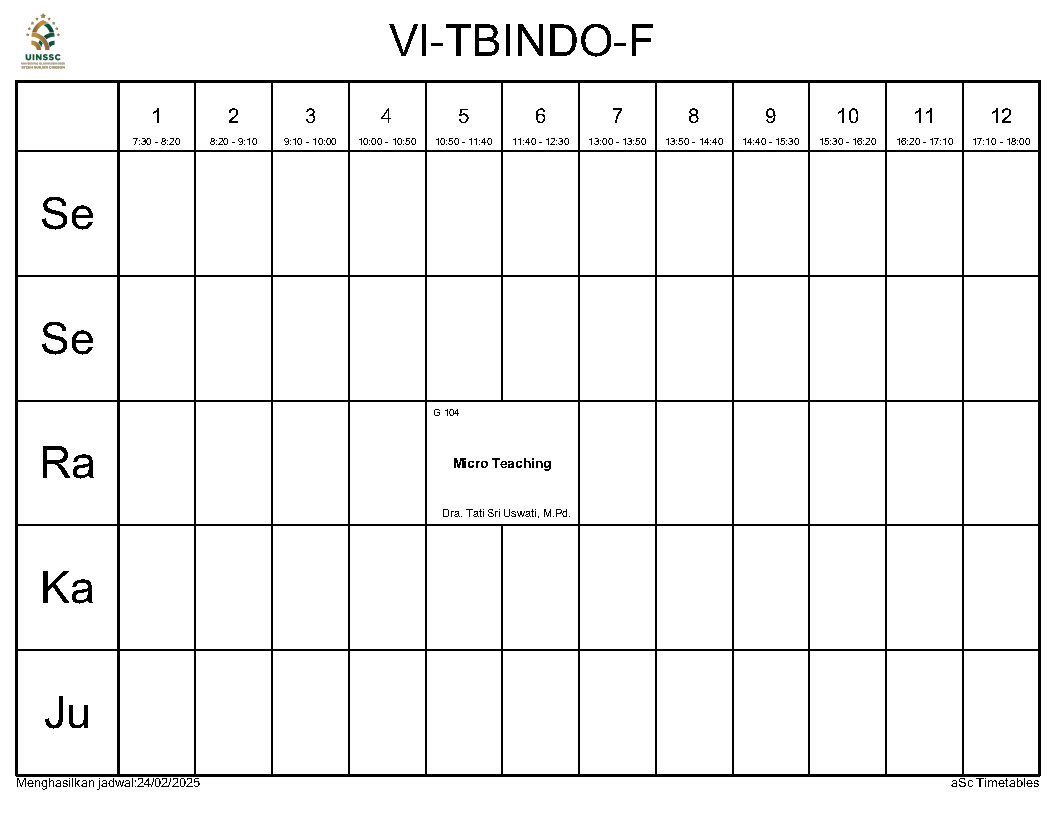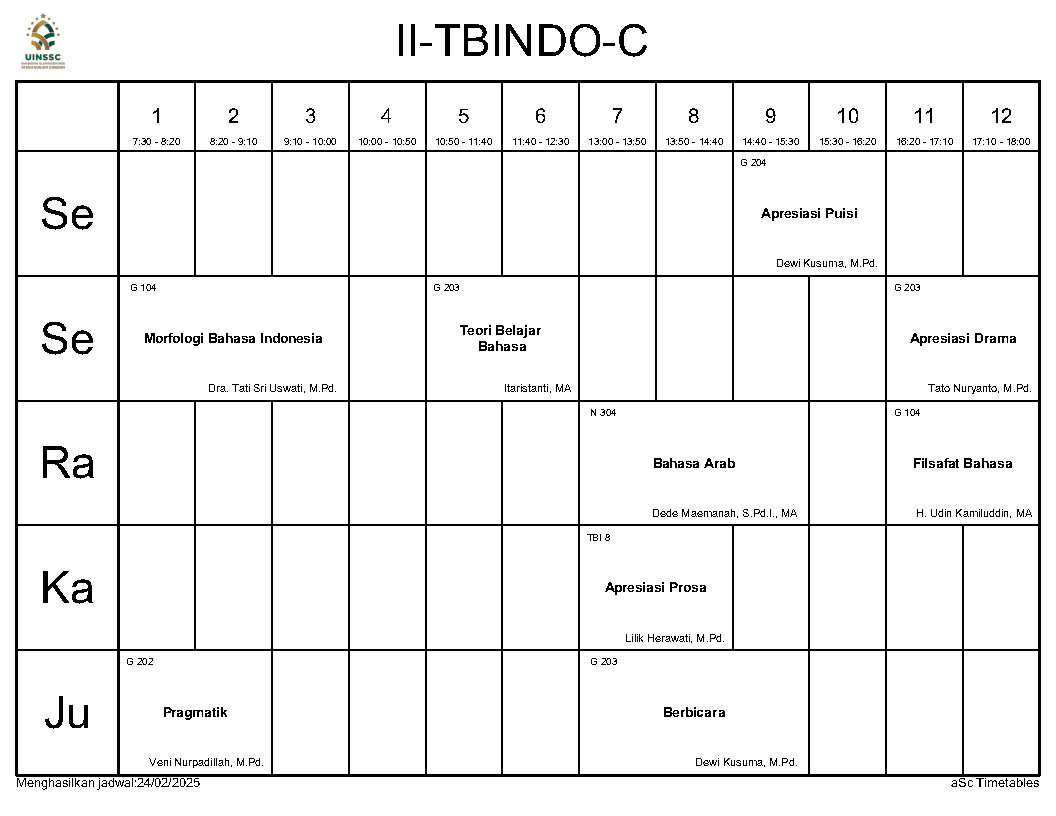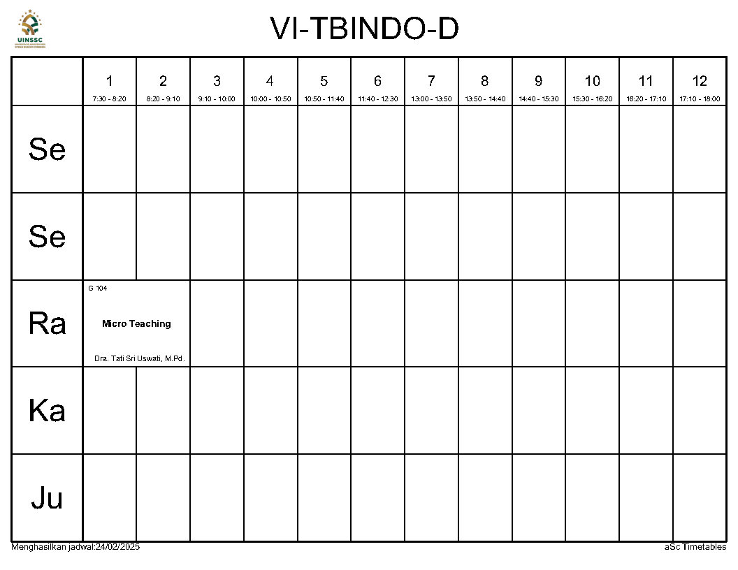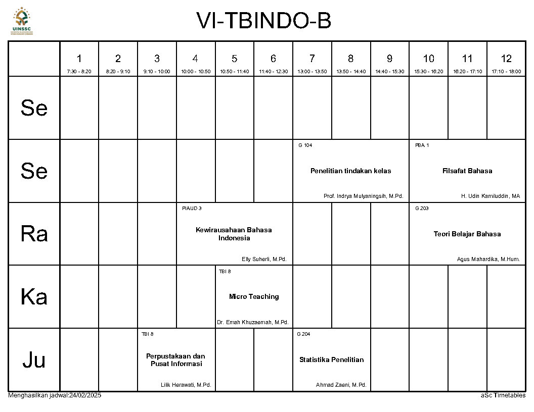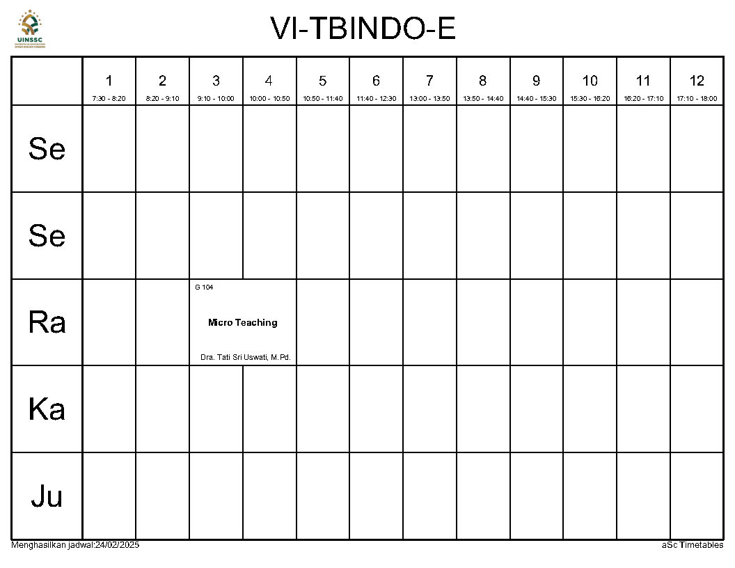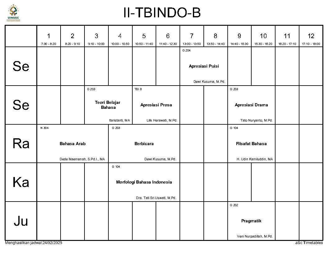 Berikut ini kami informasikan Jadwal Perkuliahan Semester Genap Tahun Akademik 2024/2025, Jurusan Tadris Bahasa Indonesia, FITK, UIN Siber Syekh Nurjati Cirebon.
